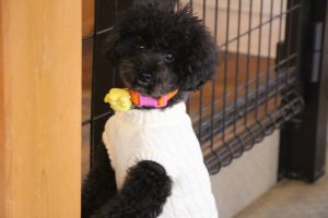 はやくお部屋から出たくて犬一倍猛アピールのジルくん!室内スペースでもお友達と上手に楽しそうに遊んでいました♪みんなにしっかりとご挨拶もバッチリ😝ごはんも完食し、排泄も問題なくできていました👍本日お帰りになります~!